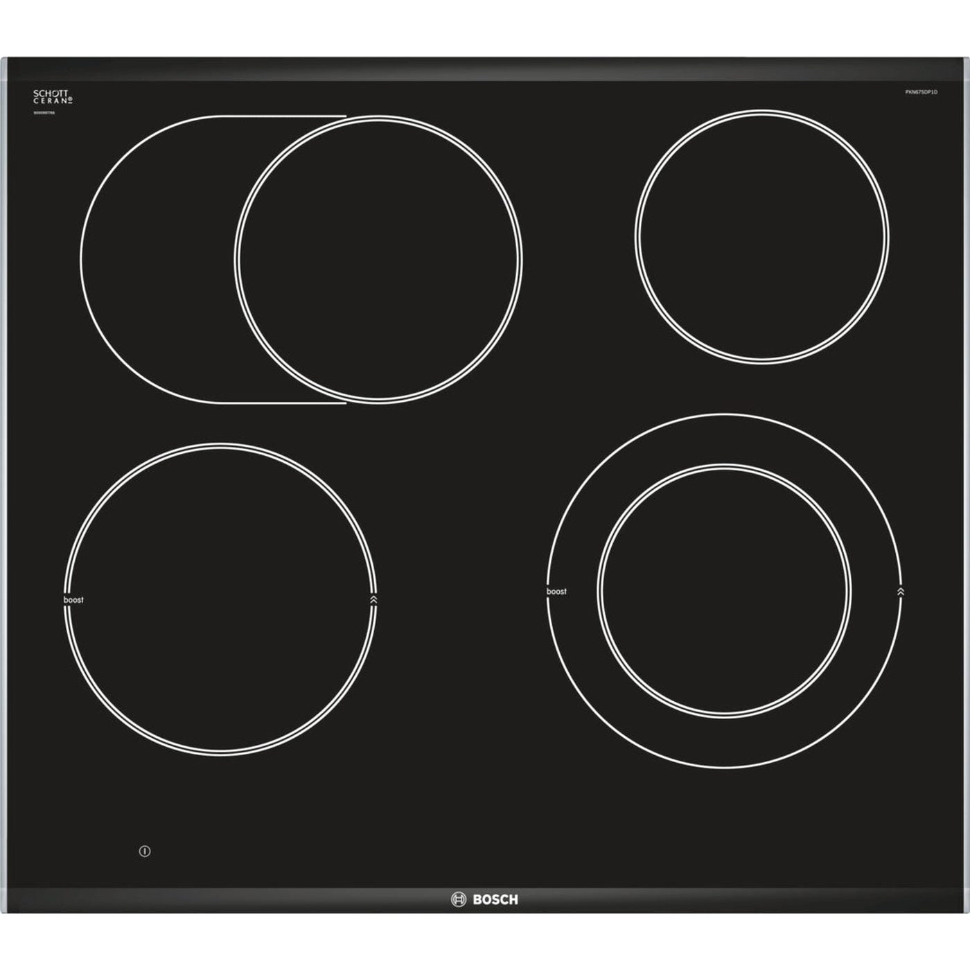 De Bosch PKN675DP1D is een keramische kookplaat die design, gebruiksgemak en krachtige prestaties samenbrengt in één betrouwbaar apparaat. Met zijn breedte van 60,6 cm en vier kookzones biedt hij voldoende flexibiliteit om meerdere gerechten tegelijk te bereiden, terwijl hij dankzij zijn compacte formaat geschikt blijft voor vrijwel elke keuken. Het strakke zwarte keramische glas zorgt voor een moderne en luxe uitstraling die moeiteloos aansluit bij eigentijdse keukens.